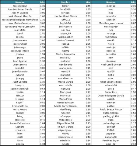 A partir de la semana que viene junto al post con el formulario para el envío de los datos os dejaremos la lista con los tiempos actualizados y las mejoras de cada uno de los que siguen el reto, no de todos, sólo de los que envíen los datos cada semana, así que acordaros de realizar este envío semanalmente.