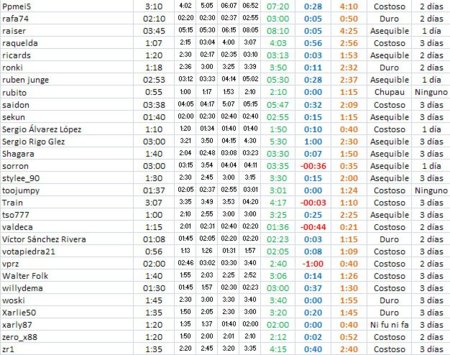 Seguimos una vez más sin recibir el 100% de los tiempos semanales con los dos puntos para el tiempo, con lo que nos hace revisar todos los envíos para ver cuál es el erróneo. Aún nos quedan dos semanas de reto, y creo que vamos a ponernos a prueba a todos para ver si en estas dos semanas todos los que envíen el resultado lo hagan bien (tarea no tan difícil, simplemente es poner un mínimo de interés) y usar los dos puntos en el tiempo.